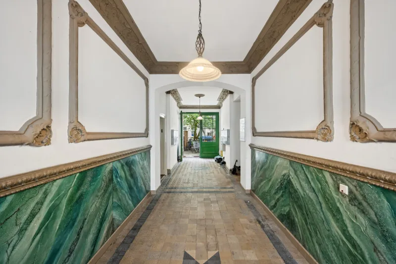 Auf dem Grundstück wurde um die vorherige Jahrhundertwende dieser wunderschöne 5-geschossige typischer Berliner Gründerzeitaltbau errichtet. Die Wohnung befindet im ruhigen und dennoch hellen Gartenhause im 4. OG. und verfügt über ein geräumige Wohnküche, Schlafzimmer und ein Badezimmer. Der Charme der Jahrhundertwende ist auch noch in der Wohnung durch die hochwertigen und abgeschliffenen Dielenböden den Hohen Decken und teilweise alten Kassettentüren vorhanden und verspricht ein angenehmes Wohngefühl.