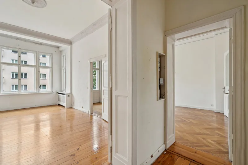Diese elegante 5-Zimmer-Altbauwohnung in der Uhlandstraße vereint zeitlose Berliner Architektur mit großzügigem Wohnkomfort und klassischem Stil. Im 2. Obergeschoss eines prachtvollen Altbaus gelegen, bietet die Wohnung auf ca. 125m² ein beeindruckendes Raumgefühl mit über 3 Meter hohen Decken, kunstvollem Stuck und edlem Parkett. Der Westbalkon lädt in den Nachmittagsstunden zum Entspannen in der Sonne ein und eröffnet den Blick auf die charmante Umgebung. Ein Aufzug sorgt für zusätzlichen Komfort in diesem stilvollen Gründerzeithaus. Die derzeitige Aufteilung umfasst vier großzügige Zimmer und bietet mit wenig Aufwand die Möglichkeit, durch die Schaffung einer offenen Wohnküche eine repräsentative 5-Zimmer-Wohnung zu gestalten – ideal für Familien, Homeoffice oder anspruchsvolles Wohnen mit viel Raum zur Entfaltung. Ein repräsentativer Altbau, hohe Decken, edle Materialien und das unverwechselbare Flair der Uhlandstraße in Berlin-Charlottenburg – diese Wohnung verbindet klassische Schönheit mit modernem Wohngefühl auf höchstem Niveau. Ein besonderes Highlight ist die angrenzende, derzeit ebenfalls verfügbare Nachbarwohnung, die bei Bedarf verbunden werden kann. So lässt sich die Wohnfläche auf beeindruckende ca. 291 m² erweitern – eine seltene Gelegenheit, eine der größten und schönsten Altbauwohnungen in dieser begehrten Lage von Berlin-Charlottenburg zu schaffen.