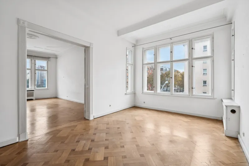 Diese außergewöhnliche 6-Zimmer-Altbauwohnung in der Uhlandstraße vereint zeitlose Eleganz mit Berliner Geschichte – ein Zuhause mit Stil, Raum und Charakter. Im 2. Obergeschoss eines prachtvollen Altbaus gelegen, bietet die Wohnung auf ca. 167 m² ein beeindruckendes Raumgefühl mit über 3 Meter hohen Decken, kunstvollem Stuck, edlem Parkett und zwei herrlichen Südbalkonen, die Sonne und Ruhe gleichermaßen schenken. Der Aufzug sorgt dabei für modernen Komfort in klassischer Architektur. Die großzügige Raumaufteilung eröffnet vielfältige Gestaltungsmöglichkeiten – ideal für Familien, Homeoffice oder repräsentatives Wohnen. Ein besonderes Highlight ist die angrenzende, derzeit ebenfalls verfügbare Nachbarwohnung, die bei Bedarf verbunden werden kann. So lässt sich die Wohnfläche auf beeindruckende ca. 291 m² erweitern– eine seltene Gelegenheit, eine der größten und schönsten Altbauwohnungen in dieser begehrten Lage von Berlin-Charlottenburg zu schaffen. Ein repräsentativer Altbau, sonnige Balkone, Raum zum Leben und das unvergleichliche Flair der Uhlandstraße – hier verbinden sich klassische Schönheit und urbanes Lebensgefühl auf höchstem Niveau